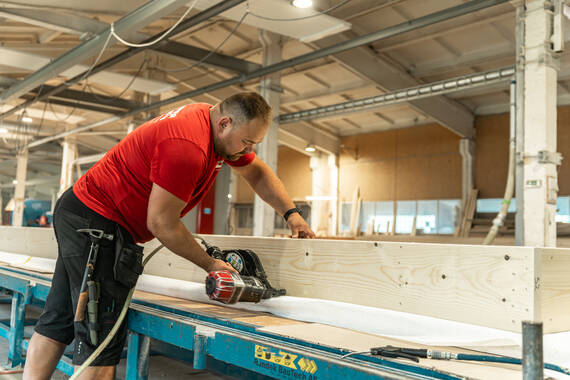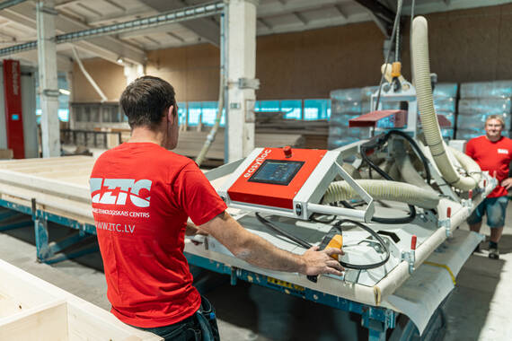 CNC ražotnes precizitāte. Hundegger CNC ražošana ar ±1 mm precizitāti. Paneļi tiek sagatavoti montāžai bez korekcijām objektā un bez kavēšanās.