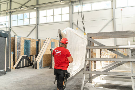 Koka karkass + CLT. Divas progresīvas būvniecības tehnoloģijas apvienotas vienā modernā ražotnē. Viens piegādātājs, viens līgums, viena atbildība.